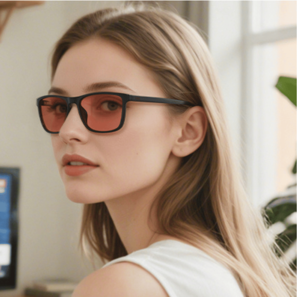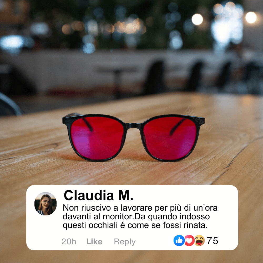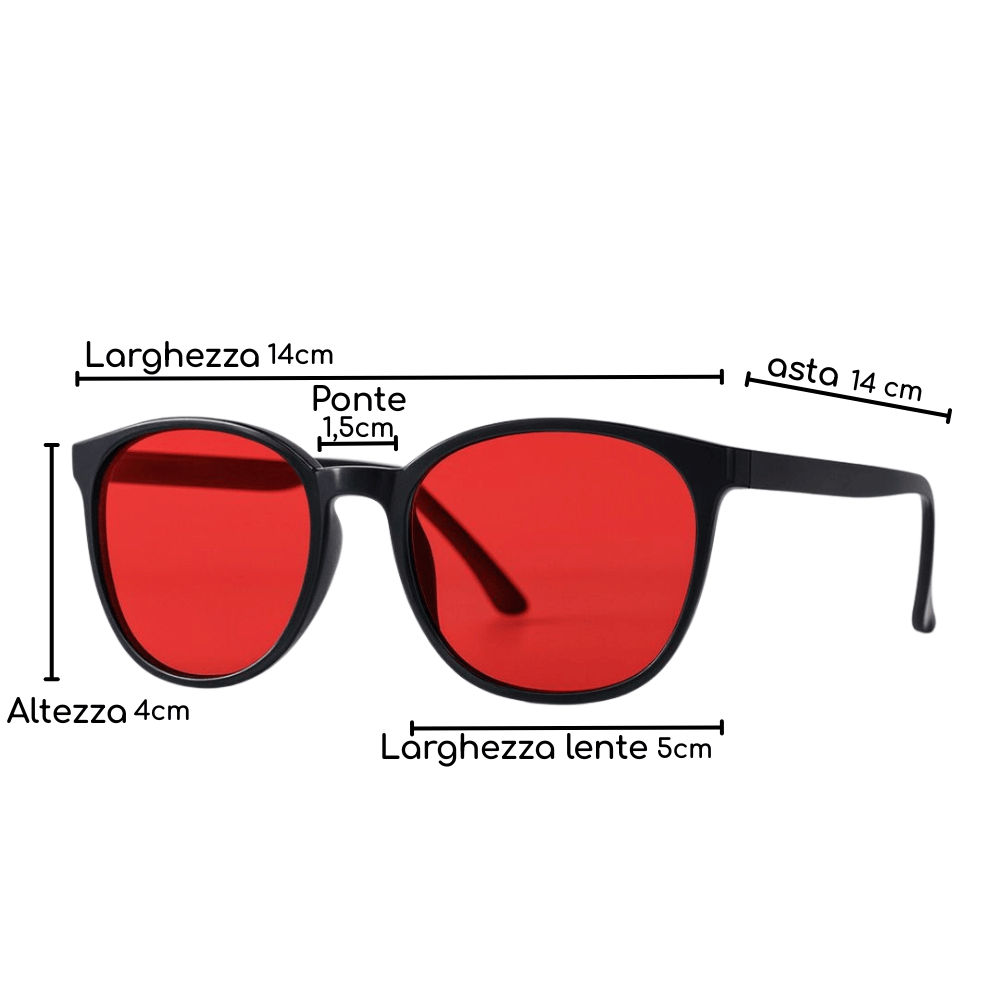Le lenti rosse, sono più efficaci la sera, quando la luce blu è più forte e dannosa.